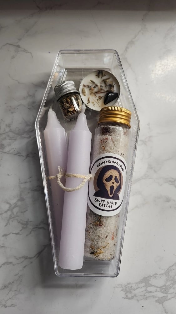 Welcome to your very own horror movie style ritual. Don’t worry... you’re the final girl in this story. This kit is here to help you slice ties with the energy vampires, fake friends, and lingering exes who should’ve been left in the last sequel.